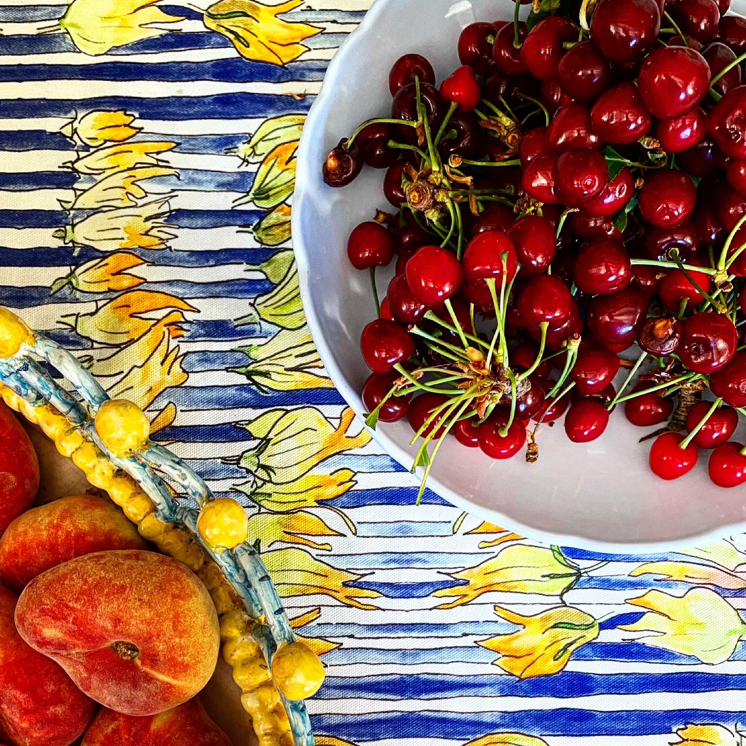 Ah summer, she's here! I often use what's available at the fruit and veggie store as an indicator of where we are in the year and right now, it's stone fruit time. When cherries first came out, I thought: "Can't be! Much too soon...what happened to the asparagus?" But now that the donut peaches, plums, and apricots have arrived in abundance (along with the humid heat), summer can't be denied.